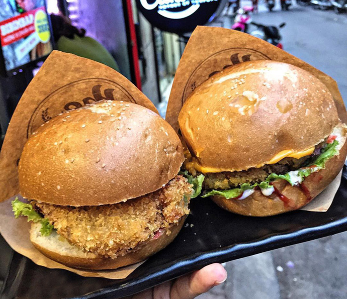 Món này cũng chỉ mới nổi lên một thời gian nhưng sức công phá không thể xem thường được. Hamburger gà chiên hấp dẫn đã chinh phục không ít thực khách cuồng ăn vặt nơi đây. Một suất hamburger gà chiên siêu đầy đặn với miếng gà chiên to oành ở giữa, ăn cực "sướng" miệng. Gà được tẩm ướp vừa miệng, bánh mềm và thơm, ăn kèm chút xà lách, tương ớt, tương cà cay cay và mayonnaise beo béo, cắn ngập miệng cho cảm giác "phê pha" cực đỉnh.